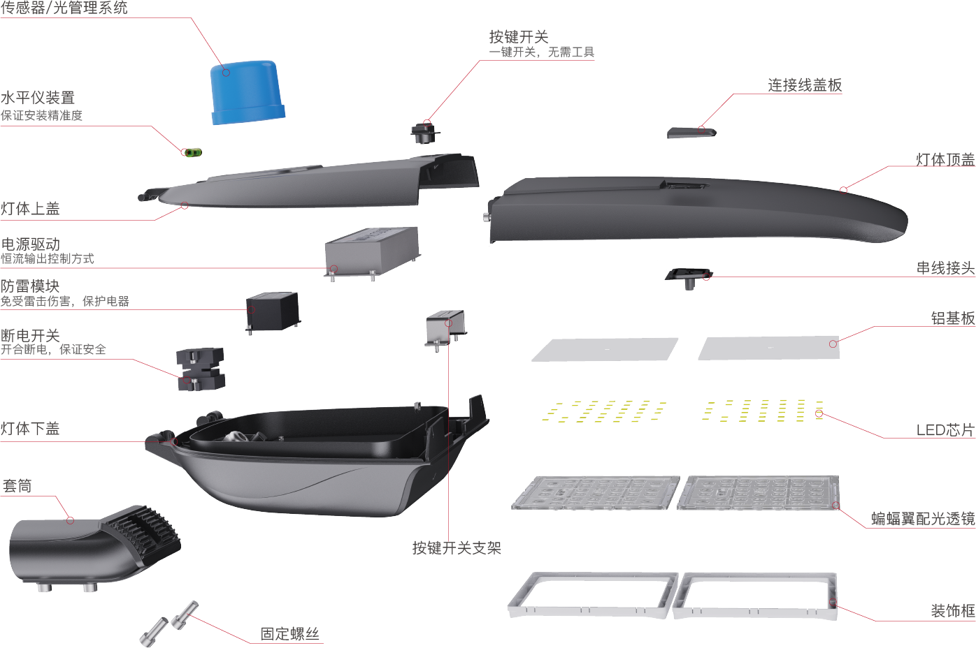 采用蝙蝠翼型配光設(shè)計(jì),提供均勻光分布。