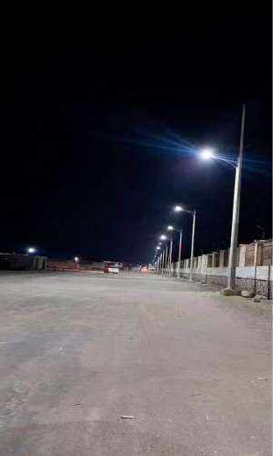 這是中東地區(qū)最新的項目,位于也門哈德拉穆特市。該項目選擇的模型是80W的和諧二體化太陽能路燈,安裝在8M的燈桿上,整體采用高轉(zhuǎn)化率單晶硅太陽能板、高光效LED模組、智能電池管理系統(tǒng)、高效控制器。蓄電池和控制器都集成在太陽能板上,同時LED采用高強度進口PC光學透鏡和蝙蝠翼型配光設計,提供均勻布光。